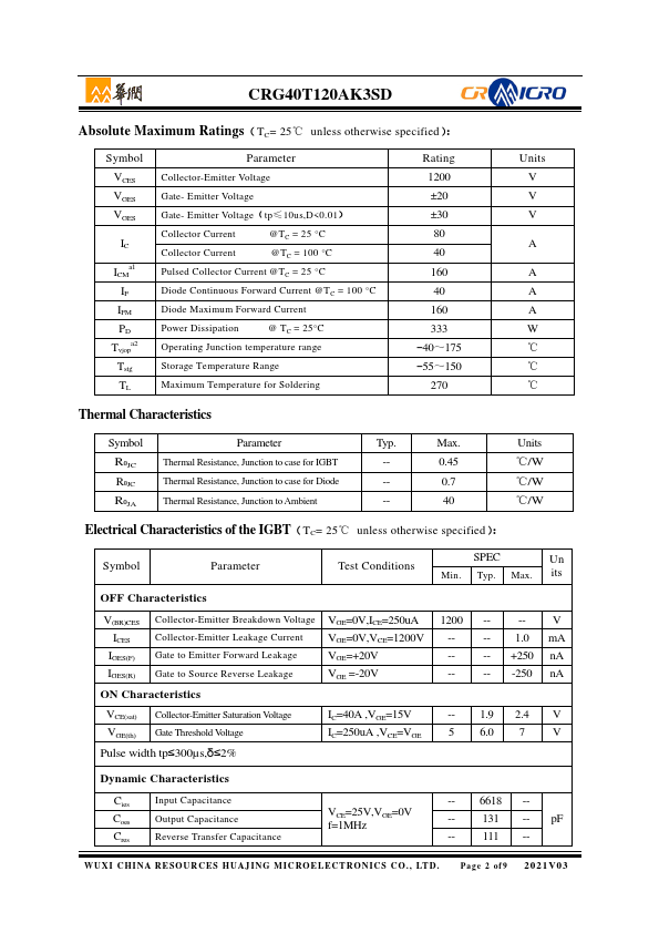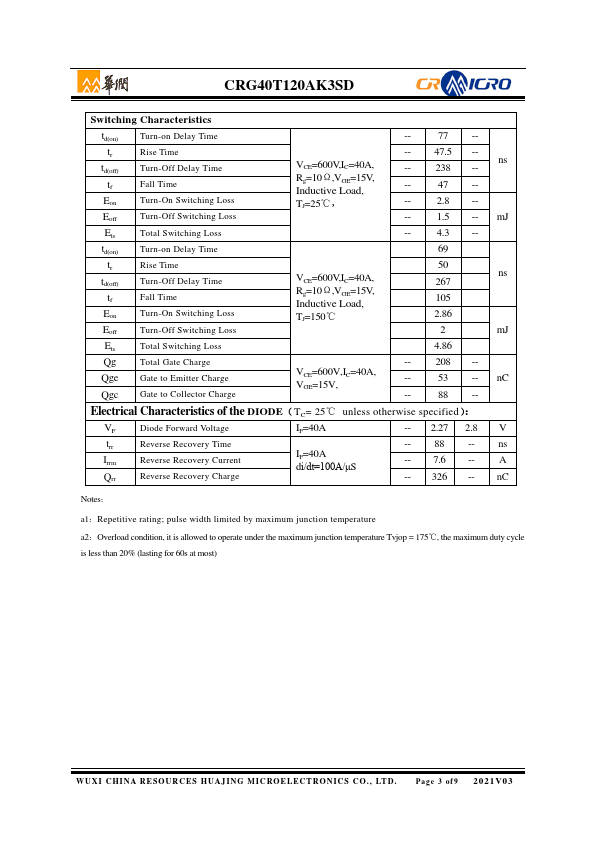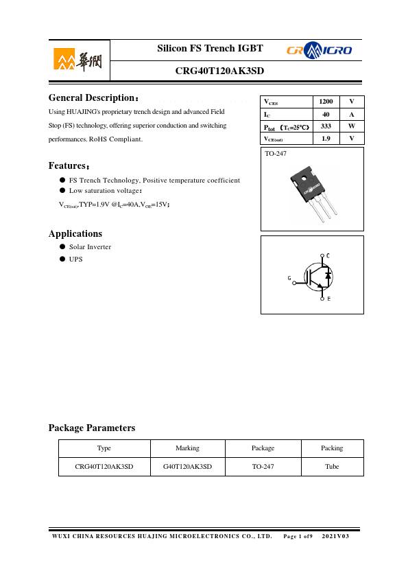 : Using HUAJING's proprietary trench design and advanced Field Stop (FS) technology, offering superior conduction and switching performances.