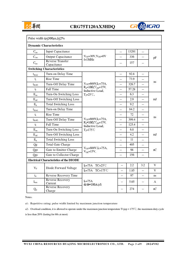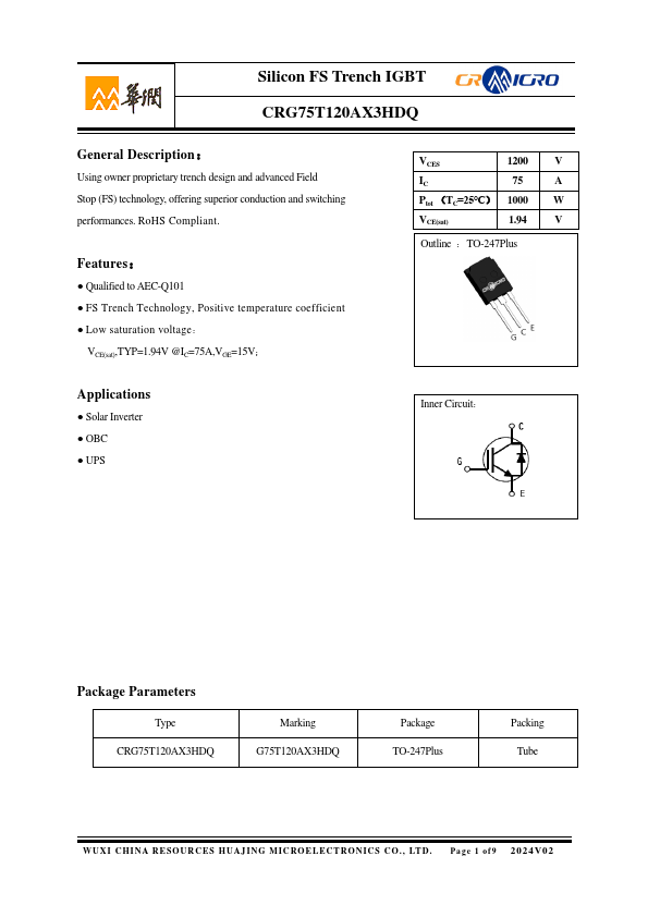 : Using owner proprietary trench design and advanced Field Stop (FS) technology, offering superior conduction and switching performances.