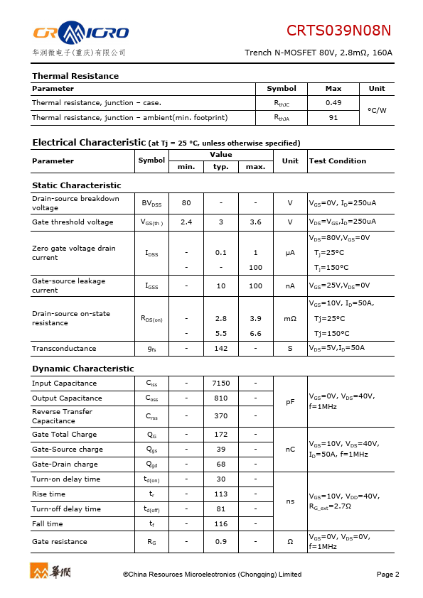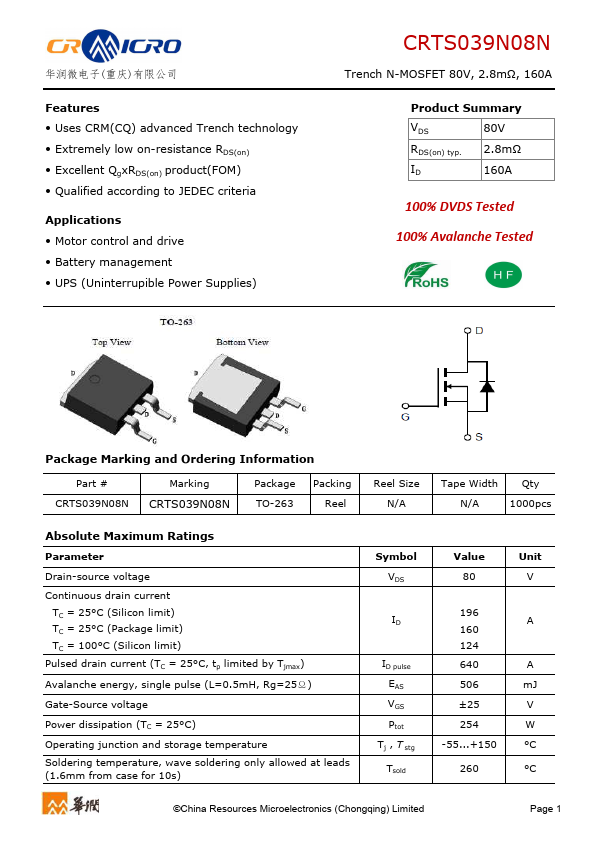 | Datasheet | CRTS039N08N-CRMicro.pdf |
