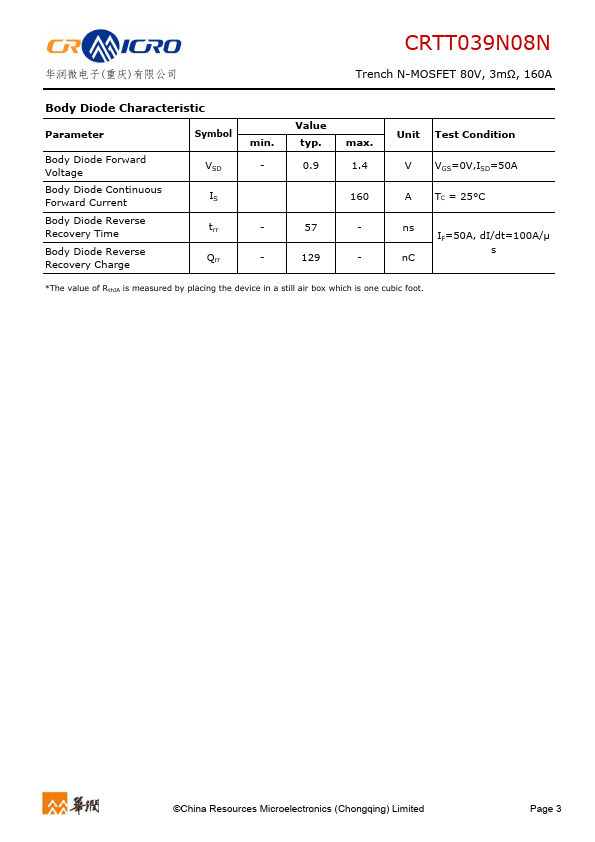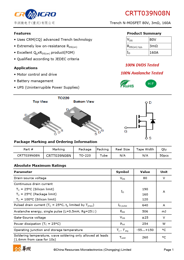 | Datasheet | CRTT039N08N-CRMicro.pdf |
