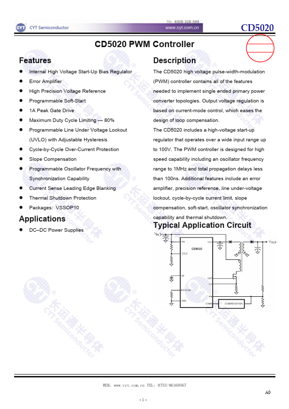 The CD5020 high voltage pulse-width-modulation (PWM) controller contains all of the.