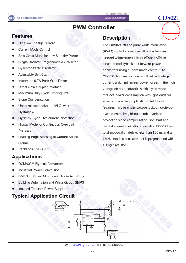 The CD5021 off-line pulse width modulation (PWM) controller contains all of the.