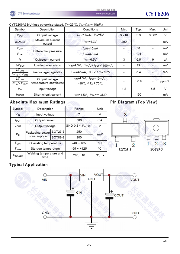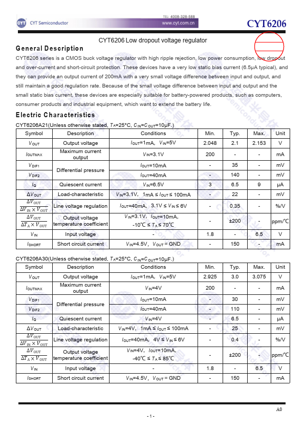 400mA CMOS LDO Regulator |