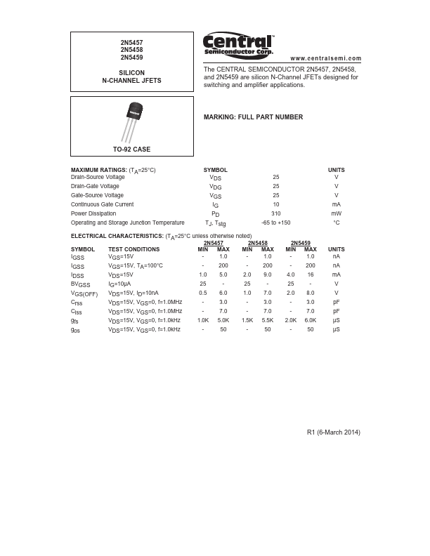 | Datasheet | 2N5457-CentralSemiconductor.pdf |
