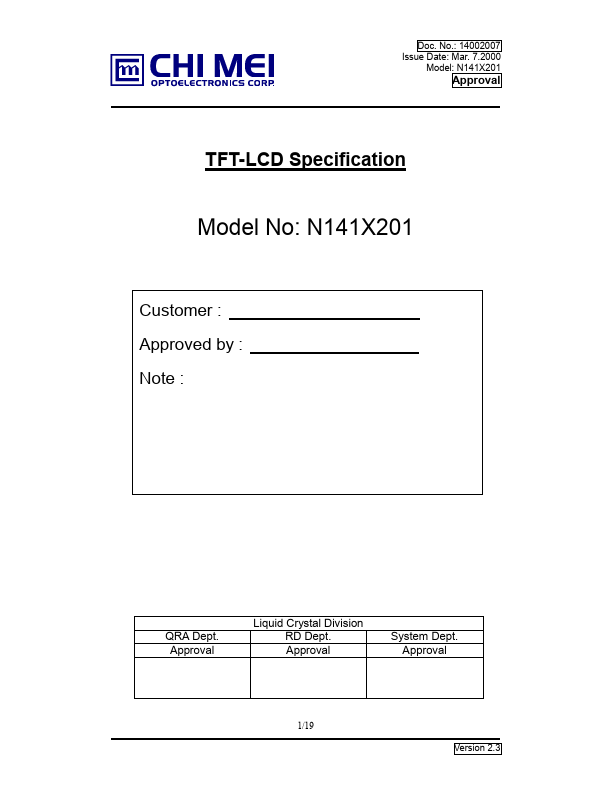 N141X201 is TFT LCD manufactured by Chi Mei.