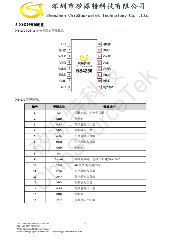 | NS4150C | 3.0W Mono Class D Audio Power Amplifier |