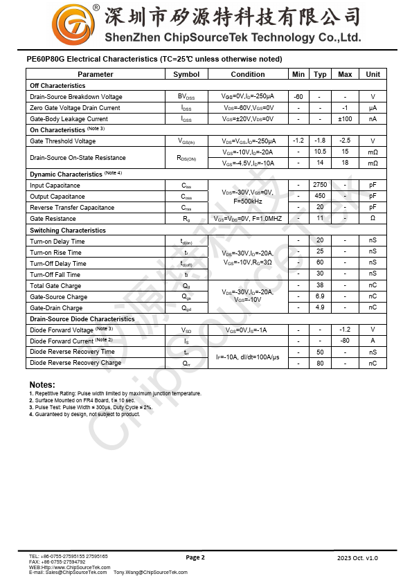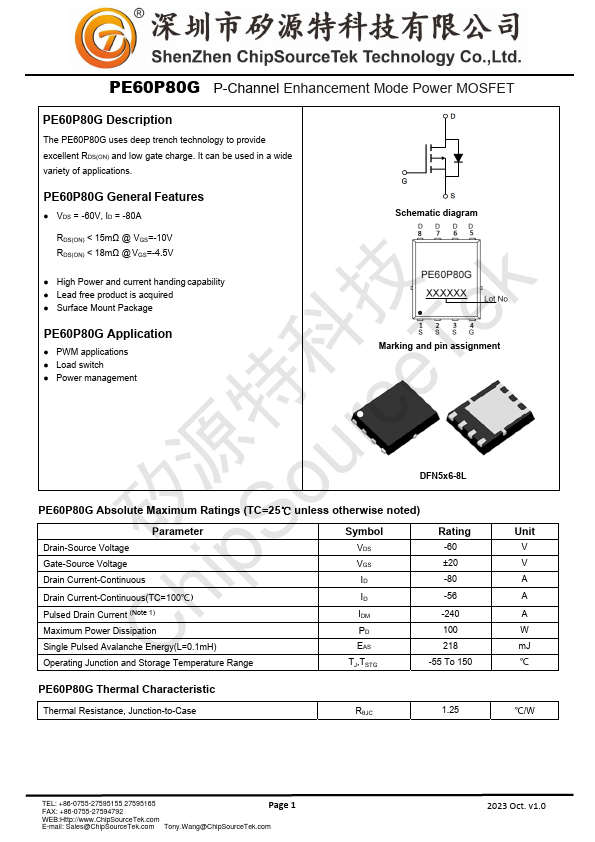 The PE60P80G uses deep trench technology to provide excellent RDS(ON) and low gate charge. It can be used in a wide variety of applications.