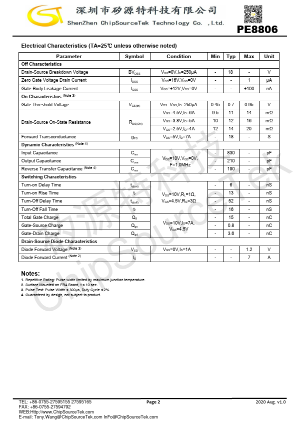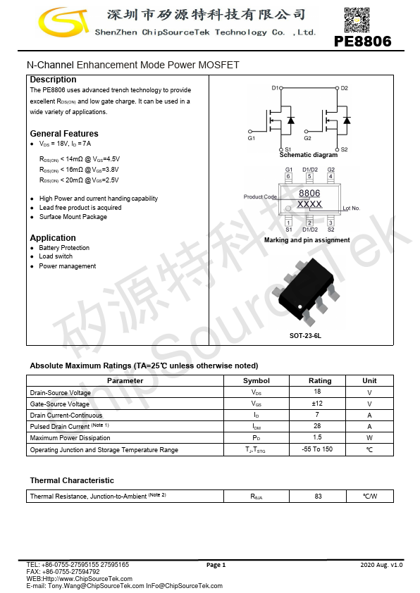 The PE8806 uses advanced trench technology to provide excellent RDS(ON) and low gate charge. It can be used in a wide variety of applications.