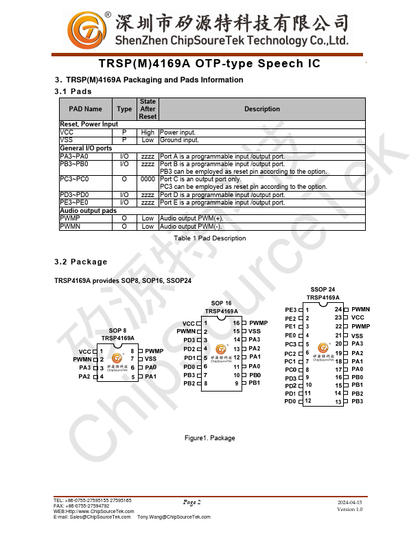 - Support option set for pull down resistor 1M, 50K Ohm, low voltage reset…etc