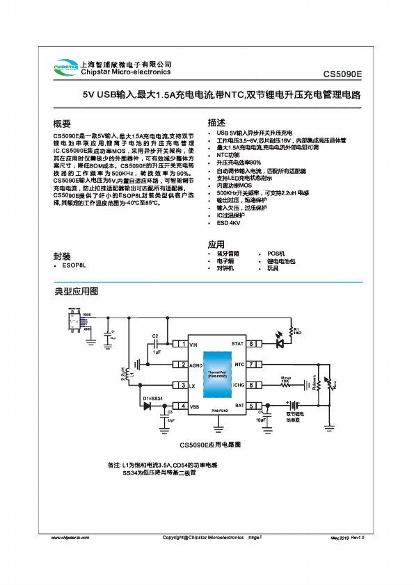 - Description: dual-cell carp electric step-up charging management IC