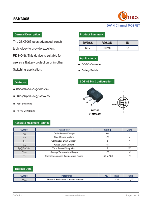 The 2SK3065 uses advanced trench technology to provide excellent RDS(ON).