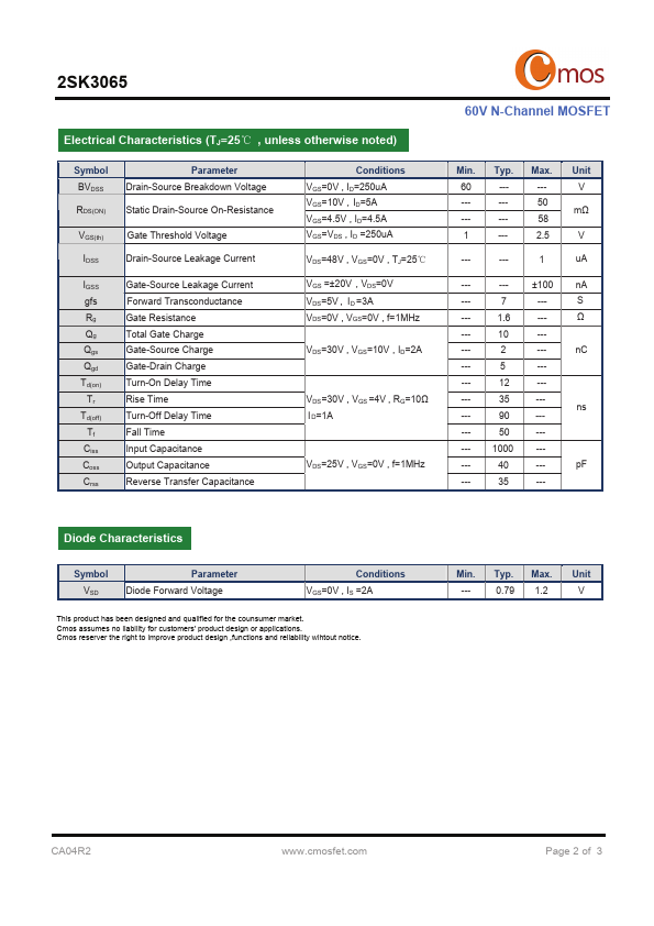 | 2SK3065 | 60V N-Channel MOSFET | VBsemi |