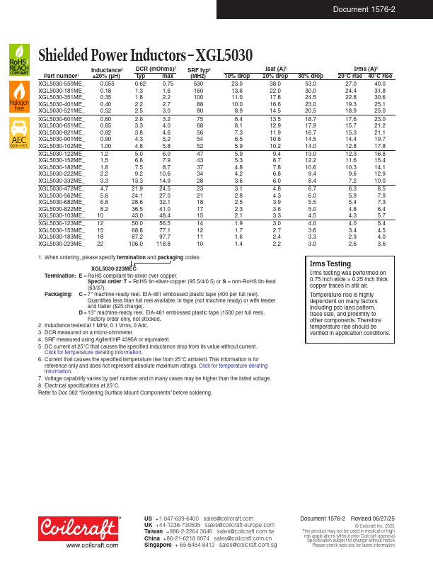 | Datasheet | XGL5030-Coilcraft.pdf |