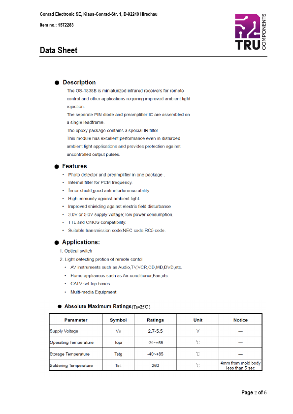 Conrad Electronic SE, Klaus-Conrad-Str. 1, D-92240 Hirschau Item no.: 1572283