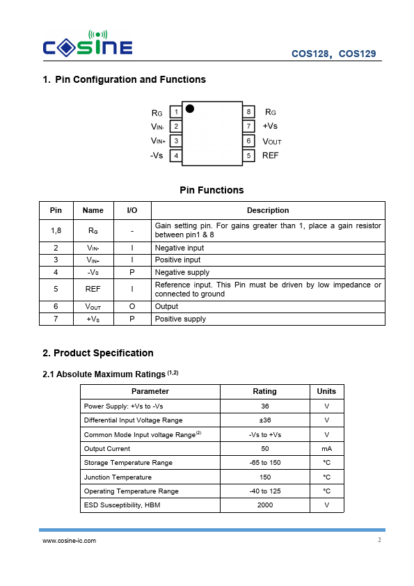 COS128 and COS129 are low-power, general purpose instrumentation amplifiers offering excellent accuracy. The versatile 3-op amp design and small size make these amplifiers ideal for a wide range of applications. A single external resistor sets any gain from 1 to 10,000.