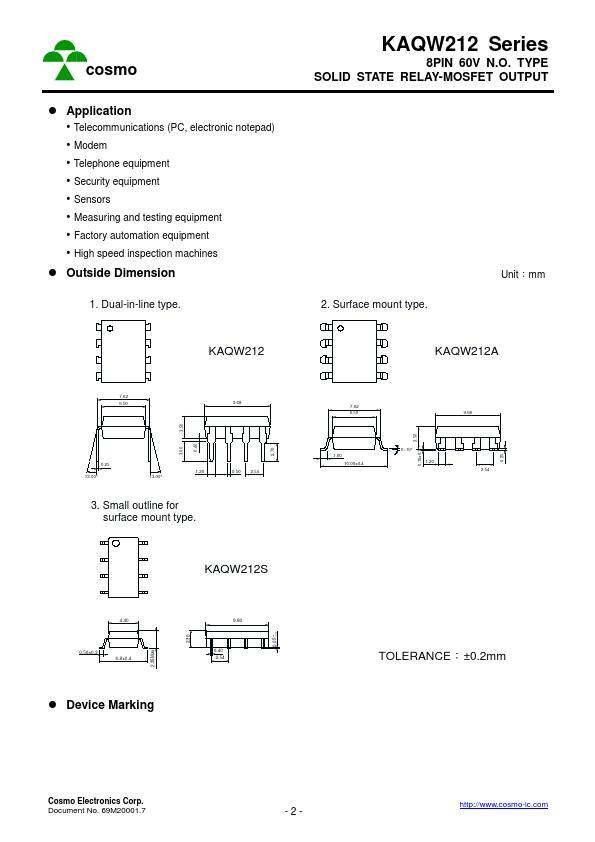 This page provides the datasheet information for the KAQW212S, a member of the KAQW212 SOLID STATE RELAY family.