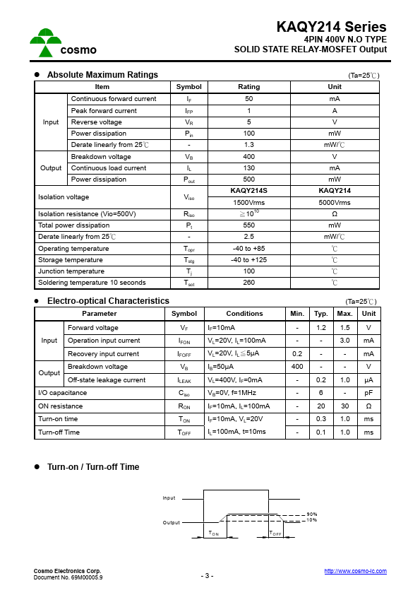 It is constructed using a GaAlAs LED for actuation control and an integrated monolithic die for the switch output.