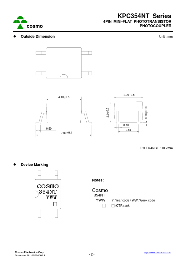KPC354NT0B - 4PIN MINI-FLAT PHOTOTRANSISTOR PHOTOCOUPLER