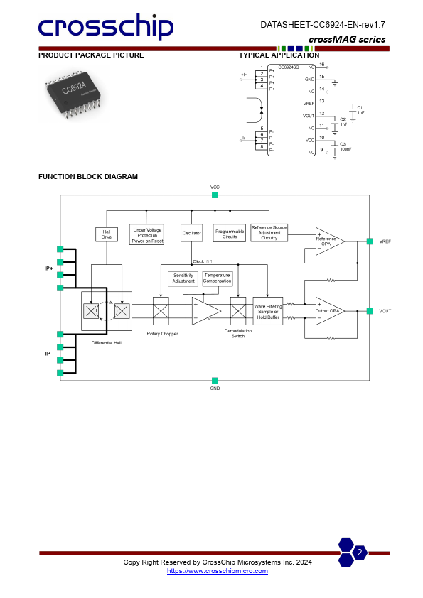 The CC6924 device is a high-performance Hall-effect current sensor that can measure DC or AC current more efficiently, and has the advantages of high accuracy, excellent linearity and temperature stability in industrial, consumer, and communication equipment.