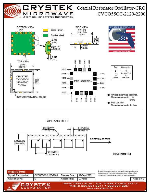 CRYSTEK Coaxial Resonator Oscillator-CRO