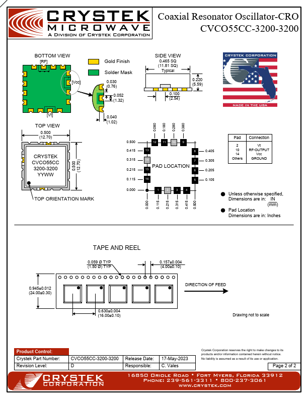 CRYSTEK Coaxial Resonator Oscillator-CRO