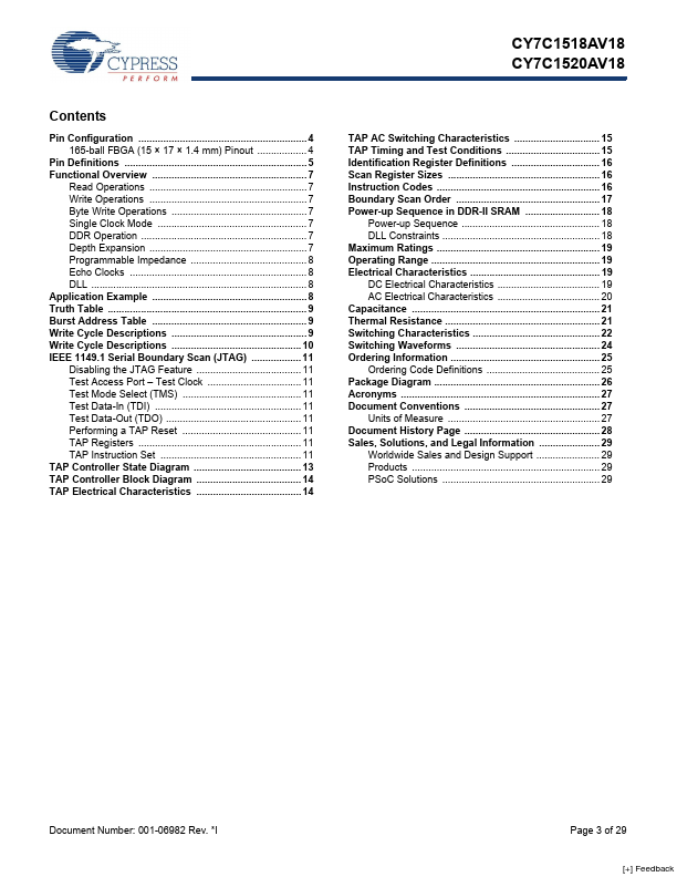 The CY7C1518AV18 and CY7C1520AV18 are 1.8 V synchronous pipelined SRAM equipped with DDR-II architecture.