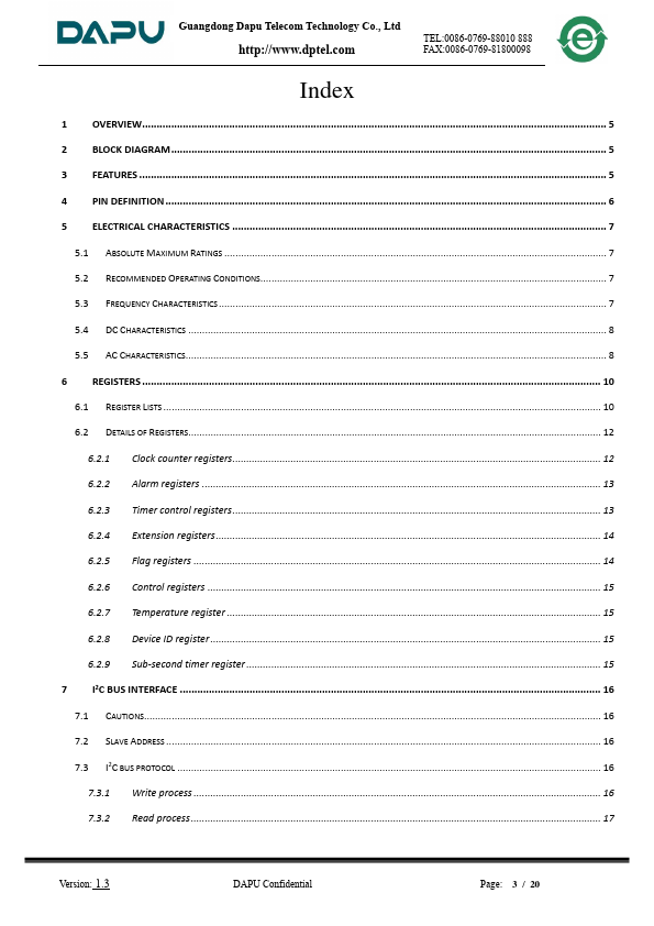 - munication Interface: I2C bus