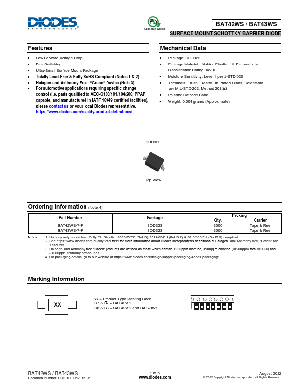 Overview: BAT42WS / BAT43WS SURFACE MOUNT SCHOTTKY BARRIER DIODE.