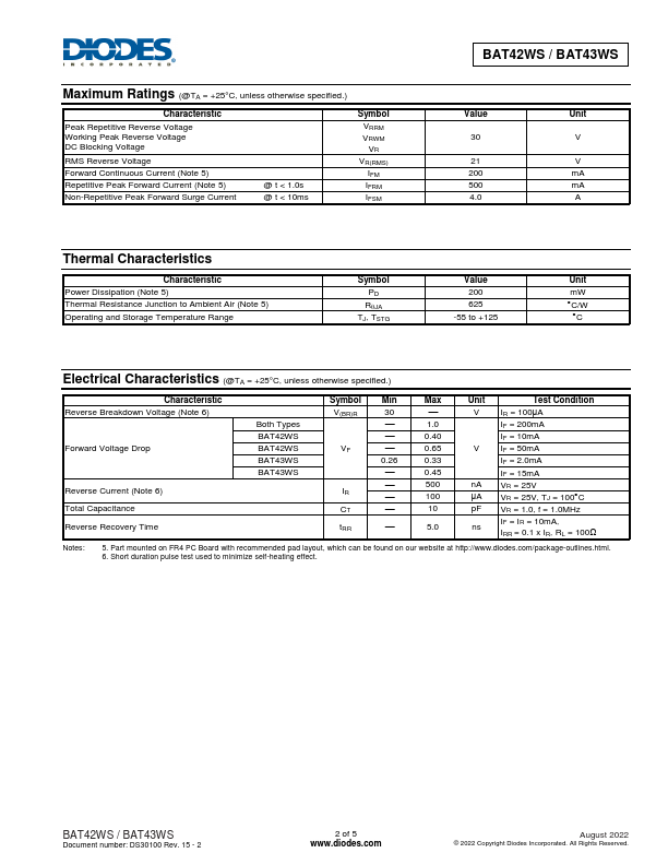 | Datasheet | BAT43WS BAT42WS Datasheet (PDF) |
