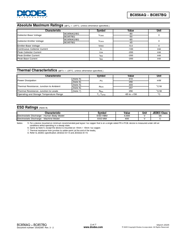 This datasheet PDF includes multiple part numbers: BC857BQ, BC856AQ. Please refer to the document for exact specifications by model. |