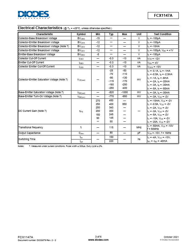 FCX1147A | PNP Silicon Power Switching Transistor | Kexin |