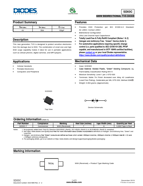 This new generation TVS is designed to protect sensitive electronics from the damage due to ESD. The bination of small size and high ESD surge capability makes it ideal for use in portable applications such as cellular phones, digital cameras, and MP3 players.