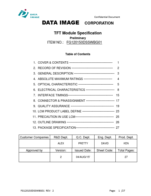 | FG120140DSCWBG01 | TFT Module |