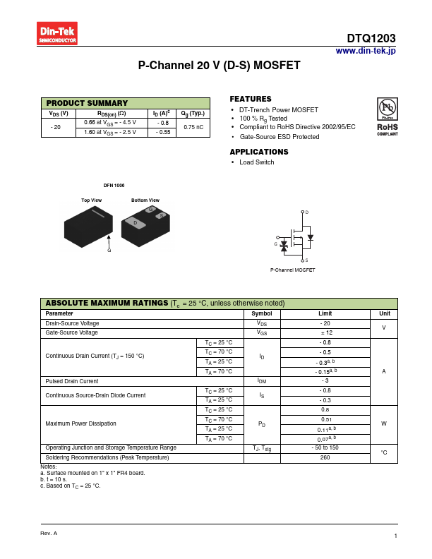 FEATURES • DT-Trench Power MOSFET • 100 % Rg Tested • Compliant to RoHS Directive 2002/95/EC • Gate-Source ESD Protected APPLICATIONS • Load Switch