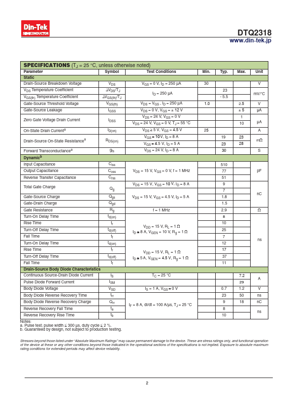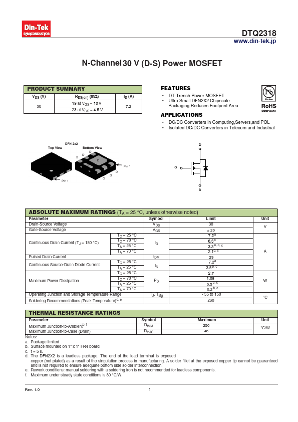 FEATURES • DT-Trench Power MOSFET • Ultra Small DFN2X2 Chipscale