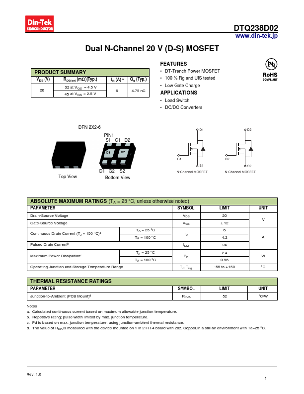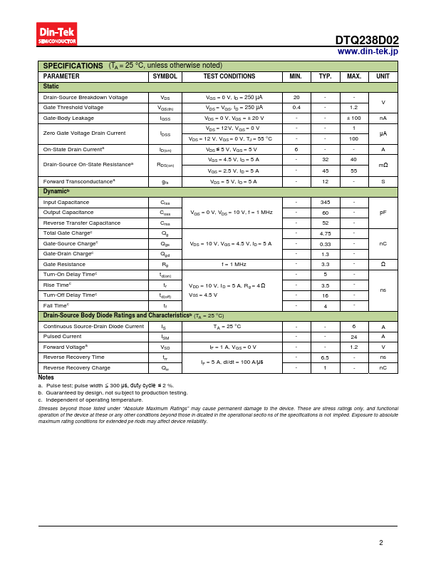 DTQ238D02 datasheet by Din-Tek Semiconductor.