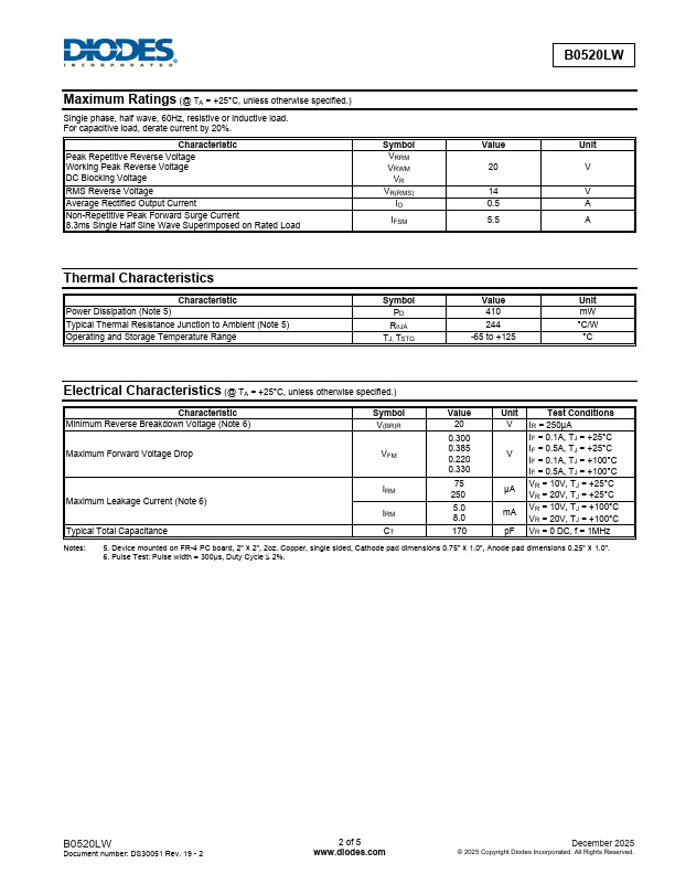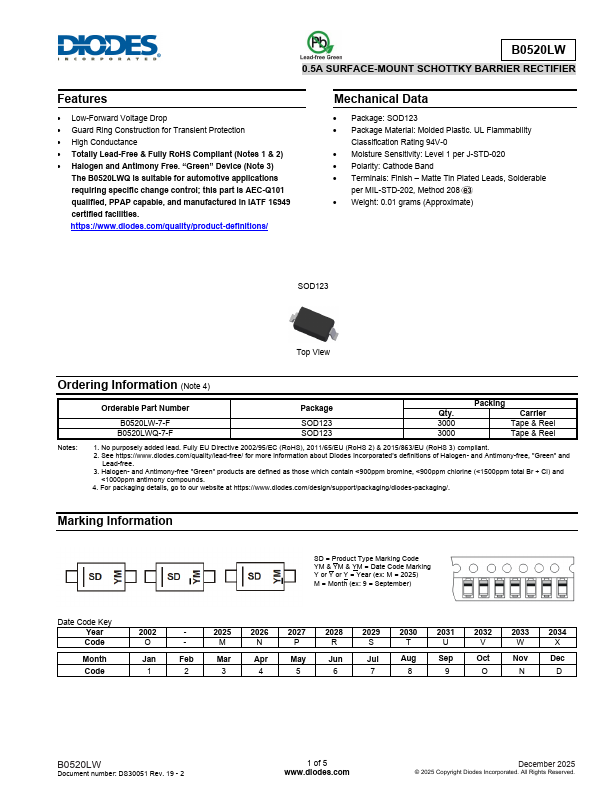 B0520LW 0.5A SURFACE-MOUNT SCHOTTKY BARRIER RECTIFIER.