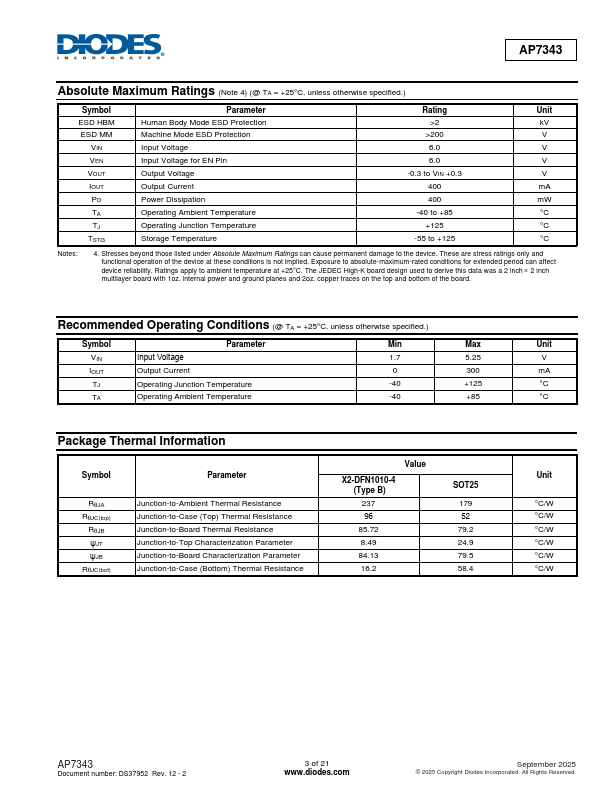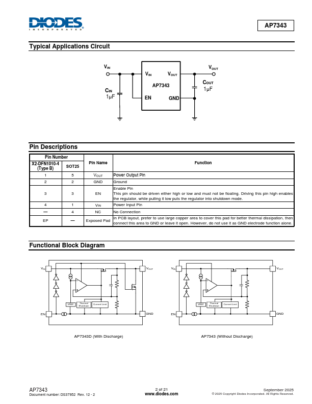The AP7343 is a low dropout regulator with high output voltage accuracy, low RDS(ON), high PSRR, low output noise, and low quiescent current.