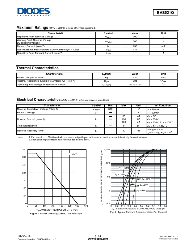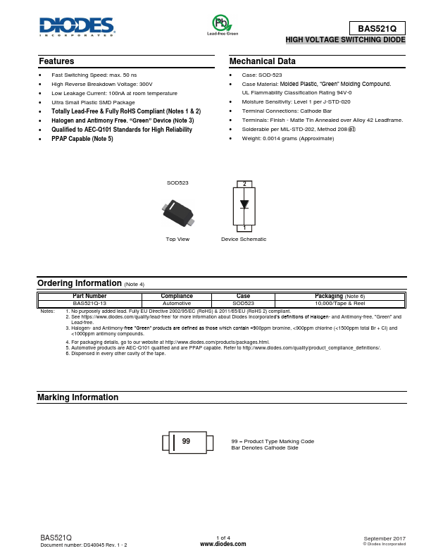 Features Fast Switching Speed: 50 ns High Reverse Breakdown Voltage: 300V Low Leakage Current:.