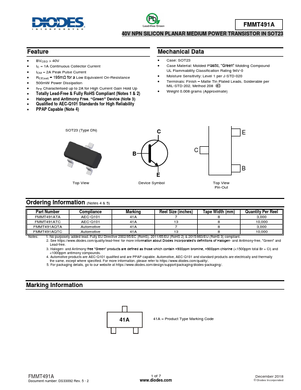 | Datasheet | FMMT491A-Diodes.pdf |