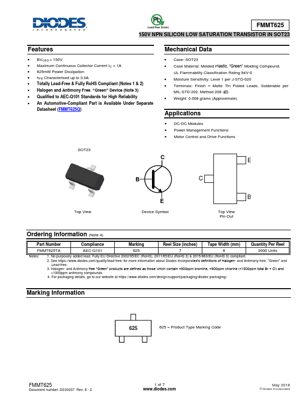 | Datasheet | FMMT625-Diodes.pdf |