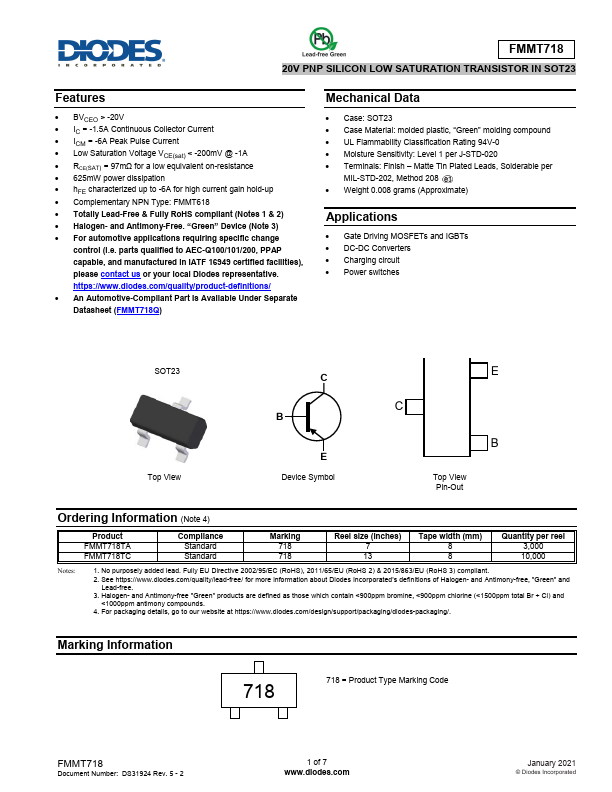 - An Automotive-pliant Part Is Available Under Separate Datasheet (FMMT718Q)