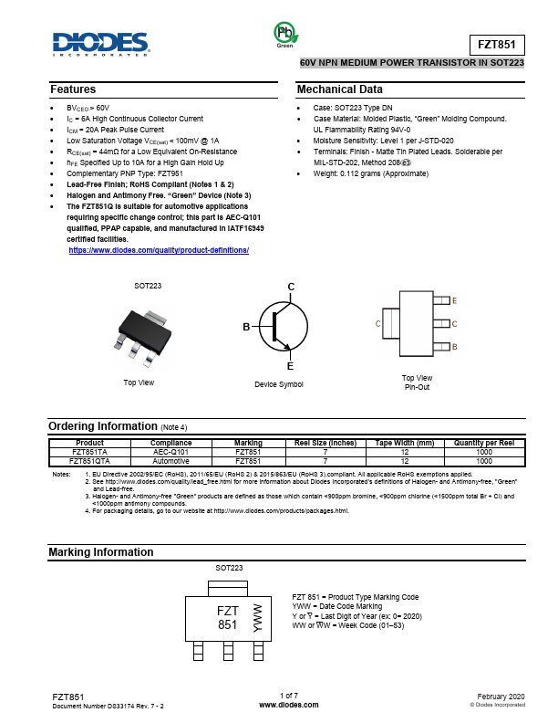 Green FZT851 60V NPN MEDIUM POWER TRANSISTOR IN SOT223.