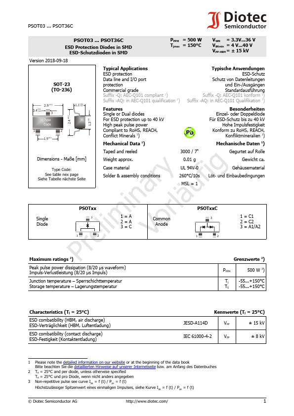 | PSOT15 | ESD Protection Diodes |