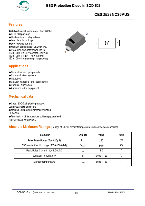 | Datasheet | CESD523NC36VUS-ECMOS.pdf |