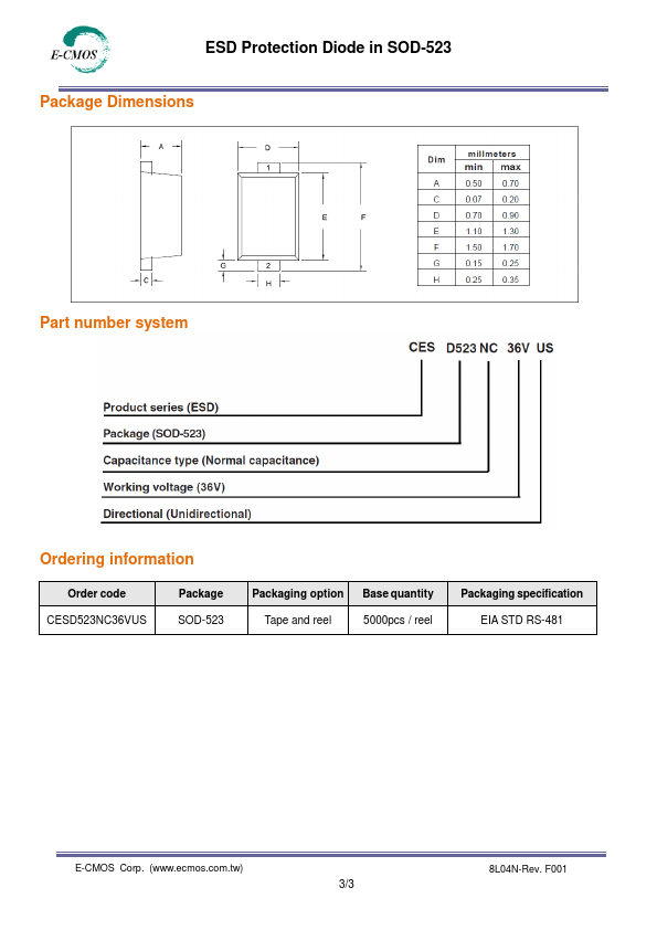 CESD523NC36VUS datasheet by E-CMOS.