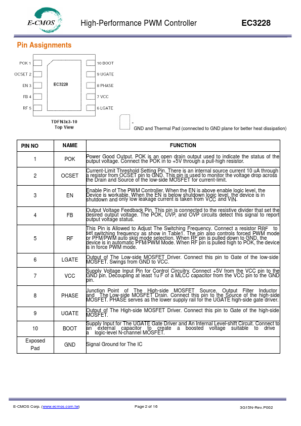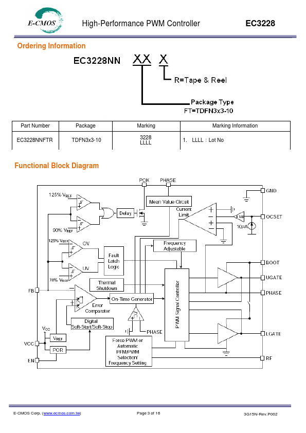 Pulse Frequency Mode (PFM), the EC3228 provides very
