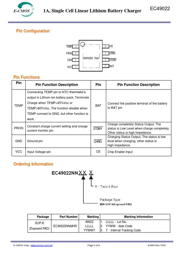 Its SOP-8(Exposed PAD) package and low external component count make the EC49022 ideally suited for portable applications.