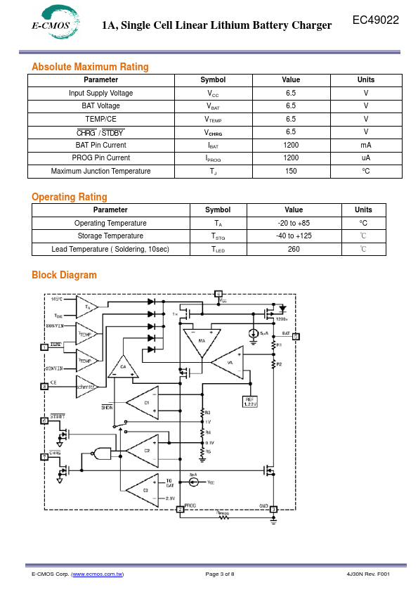 The EC49022 is a complete constant - current & constant-voltage linear charger for single cell lithium-ion batteries.