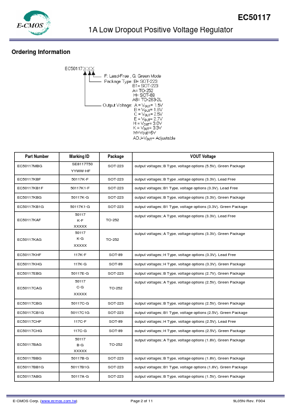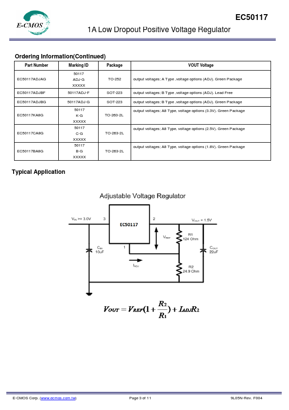 EC50117 1A Low Dropout Positive Voltage Regulator